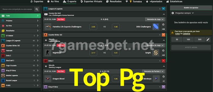 O Top Pg oferece uma grande seleção de opções de apostas em e-sports com probabilidades competitivas